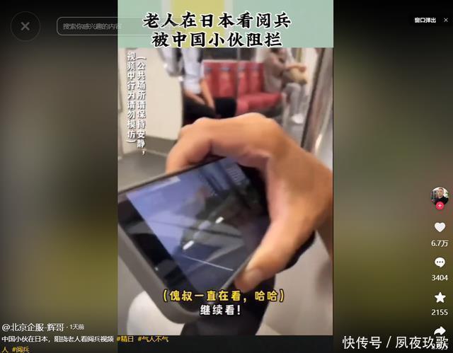 那句“这里是日本”更是被认为是一句极其“可怕”的言论,难道在日本就不能放中国的阅兵吗?有网友甚至激动地表示应该曝光这个小伙子的脸,看看他到底长什么“嘴脸”。